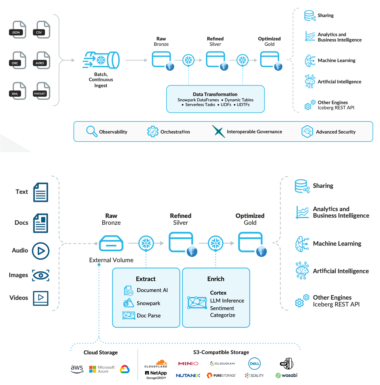 图:奖牌架构数据处理流程:结构化数据(上图);非结构化数据(下图)