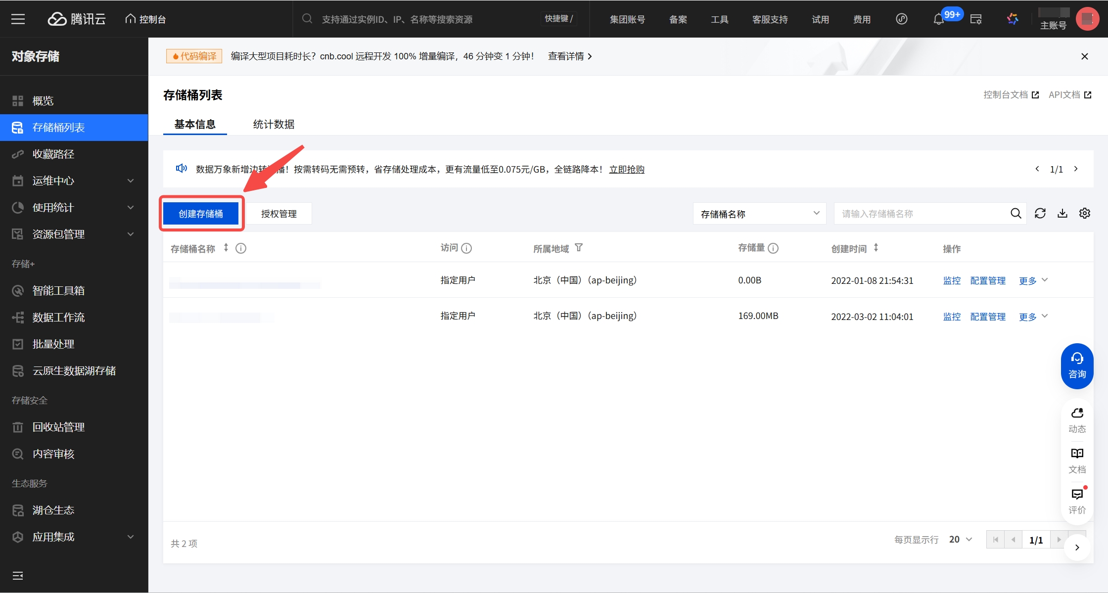1. 进入Bucket管理页面