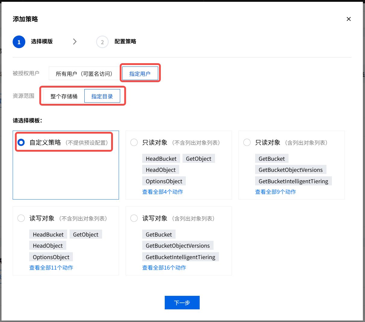 | 请选择模板 | 自定义策略 |