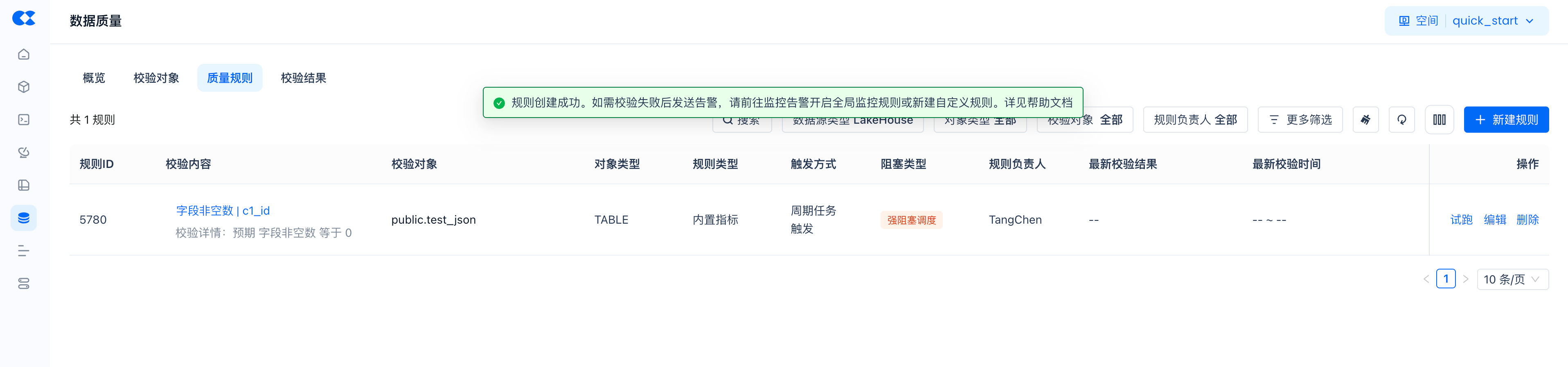 创建完成后,在质量规则列表页面可以看到新增的规则。