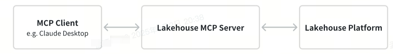 本示例介绍采用 HTTP (Streamable) 协议方式部署(推荐),同时 Claude Desktop (MCP 客户端) 和MCP服务器都运行在同一台本地计算机(localhost)上。该架构同样支持分布式部署,即客户端、服务器和 Lakehouse 平台可以分别位于不同的远程主机上。