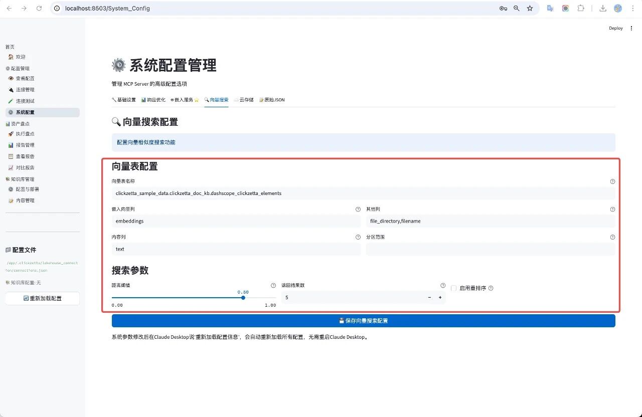 此步骤的目的是告诉MCP系统去哪里、以及如何搜索已经存储好的文档知识库。