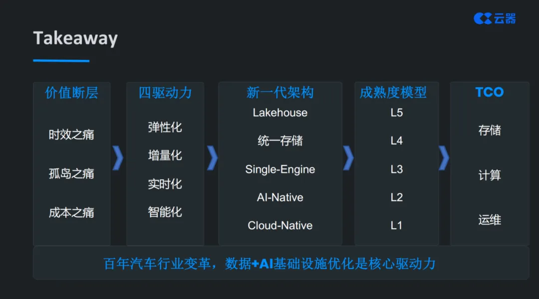 白皮书提出的四大技术支点(弹性化、增量化、实时化、智能化)、五级成熟度模型(L1-L5)、TCO优化路径、五步行动指南,构成了一个完整的方法论体系。它不是纸上谈兵,而是在多家头部车企实战验证过的有效路径。