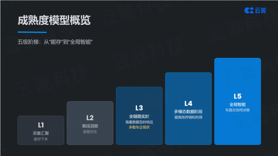 理念再先进,也需要可量化的评估体系。白皮书首次提出了车联网数据平台的五级成熟度模型,为行业提供了一把衡量自身能力的标尺。